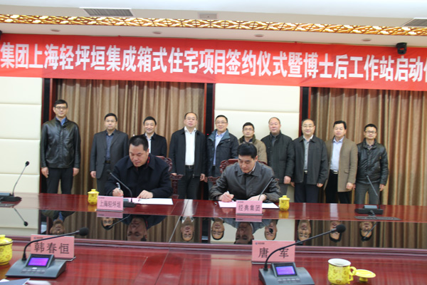 儀式上,經典集團與輕坪垣輕鋼房屋技術有限公司簽署了經典集成箱式住宅項目合作協議,與同濟大學博士后姚行友簽訂了工作協議,標志著經典集成箱式住宅產學研合作項目和博士后工作站正式啟動。